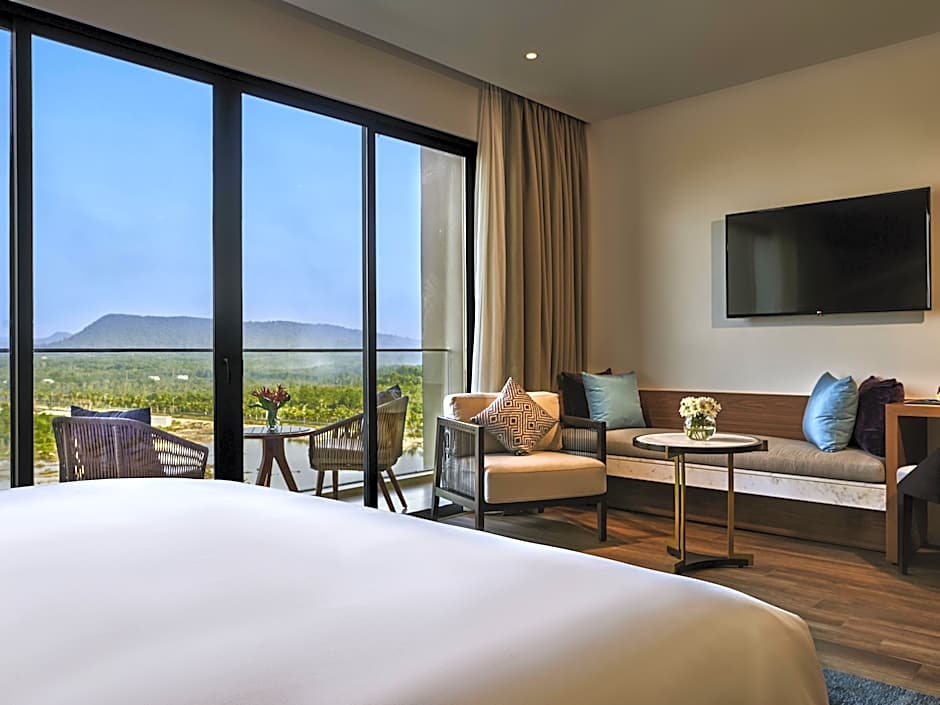 One Bedroom Villa with Private Pool - Lake View is 1335 square feet and includes a double bed 131-150 width plus balcony, desk, cable tv, hairdryer, safe, and slippers.